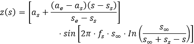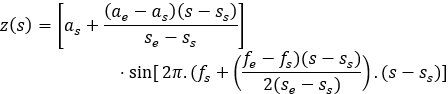 The frequency changes linearly with distance s. The road profile height z is given by: