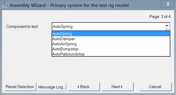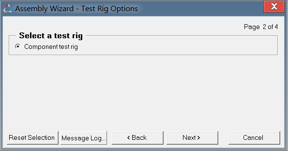 The Assembly wizard – Test Rig Options window opens. Figure 4.