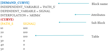 - In the above example, the attributes are: TAG, SATURATION, LOOK_AHEAD_TIME, DEMAND_FILE, INTEGRATION_STEP_SIZE are the attribute names.