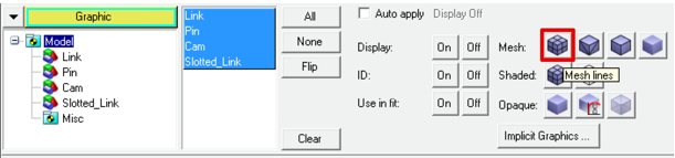 8. From the Graphic list on the left side of the panel, click Model to select all graphics, then click Mesh lines, .