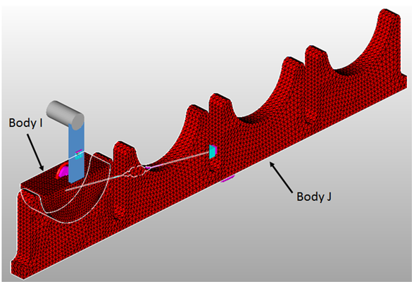 9. Repeat Steps 1 - 7 for creating contact between the Pin body (Body I) and the Slotted_Link (Body J). You may define the label for this contact to be Pin Slotted Link Contact. Define the same contact properties as listed in Step 7 above.