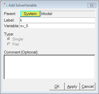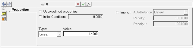 Two types of solver variables are available. The first, and probably the most convenient, is the expression valued variable. The second is the user-subroutine valued variable.