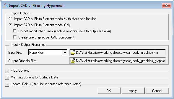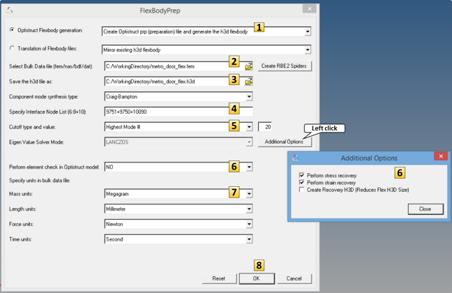 In this step, you will use the FEM file created in Step 1 and use Flex Prep to generate a flexible body H3D file. A pre-requisite for going through this step of the tutorial is an understanding of Flex Prep as described in MV-2010: Flexbody Generation using Flex Prep and OptiStruct.