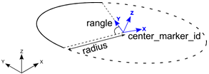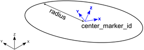 The CircleFromRadius graphic type is defined by a marker and the radius. The origin of the circle is centered at the origin of the marker specified by center_marker_id; also the Z axis of this marker determines the normal to the plane of the circle. The radius is specified by the radius attribute.