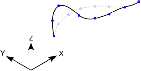 Figure 20. DeformCurve graphic typeThe ParamCurve graphic type is used to represent a curve defined in the model as a Reference_ParamCurve element. The graphic is defined by a number of straight line segments connecting vertices on the curve defined by curve_id.
