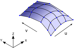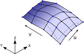 The attribute nseg_u and nseg_v defines the number of segments that should be used to draw the curves along the U and V directions of the surface respectively. Larger values will result in a smoother looking surface.