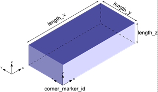 Figure 4. BoxDefinedFromCorner graphic typeBoth the BoxDefinedFromCenter and BoxDefinedFromCorner graphics are defined by their x, y, z lengths and a marker at the center or the corner, respectively.