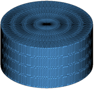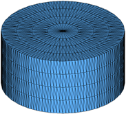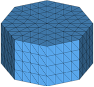 Figure 31. Cylinder with refinement_level = 3The refinement_level attribute may also be used for a TriaMesh graphic type. Increasing the refinement level by 1 results in each triangle being divided into 4 triangles as illustrated in the figures below. Note: if you wish to use your TriaMesh graphic as is, set this attribute to 0 or do not define it.
