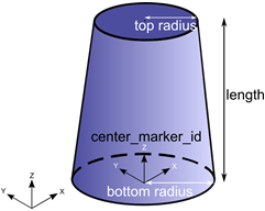 Figure 6. Frustum graphic typeThe Cylinder and Frustum graphics are defined by the radius (top and bottom in case of Frustum), length and the marker at the center of the geometry.
