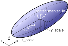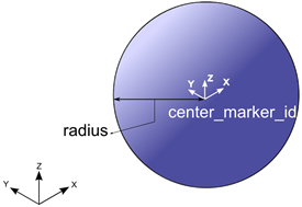 Figure 8. Sphere graphic typeThe Ellipsoid and Sphere graphic type are defined by the radii (x, y and z for Ellipsoid and a single radius for the Sphere) and the marker located at the center of the geometry.