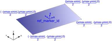 Figure 10. SPDP graphic typeThe Plane graphic type is defined by the spatial extent (xmin, xmax, ymin, ymax) and a marker. This marker is positioned at the center of the plane, and the Z axis of this marker determines the normal to the plane. The spatial lengths are defined in the coordinate system of the ref_marker_id(shown in blue above).