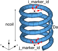 The SPDP graphic type is defined by the two attachment markers for the I and J body, the number of coils in the spring and the diameter of the coil.