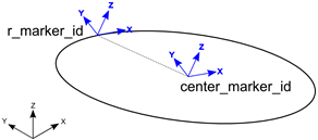 Figure 12. CircleFromRadius graphic typeThe CircleFromRM graphic type is defined by two markers. The origin of the circle is centered at the origin of the marker specified by center_marker_id; also the Z axis of this marker determines the normal to the plane of the circle. The origin of the r_marker_id is used to determine the radius of the circle as , where is the position of the center_marker_id and is the position of the r_marker_id.