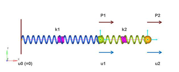 Figure 1. Springs in Series – Model DescriptionA list of properties for the system follows:- Displacement: u0 =0 (Fixed)