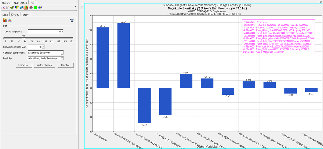 Abs of Magnitude Sensitivity - Design variables are ranked