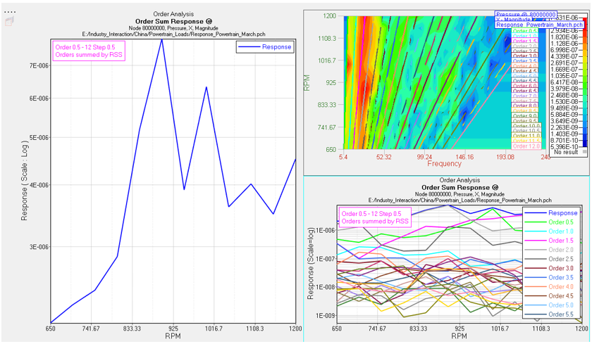 Generates and post-processes engine order related data from an OptiStruct or Nastran frequency response analysis that contains either RPM-based loading subcases or order-based loading subcases.