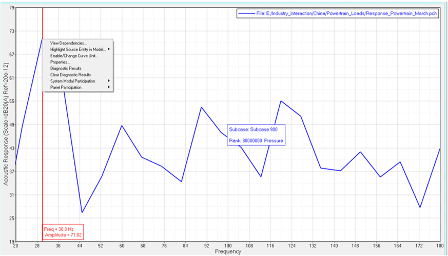 - 20 logarithmic of the participation value over the reference value. For acoustic responses, the reference pressure is 20E-12 MPa.