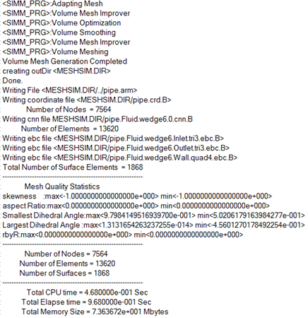 Once the mesh generation is complete, the mesh data is written on the disk and AcuConsole notifies you that the mesh generation was successful.