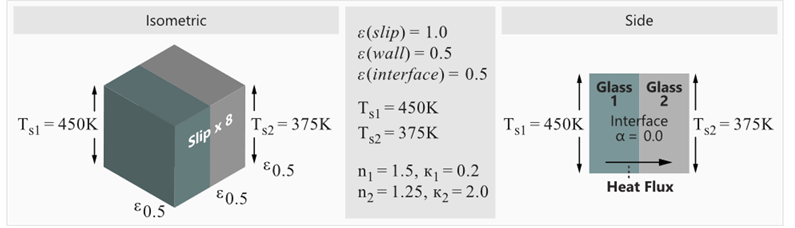 Figure 1. Critical Dimensions and Parameters Used for Simulating Radiation Heat Transfer Through a Cube with a Specular Interface