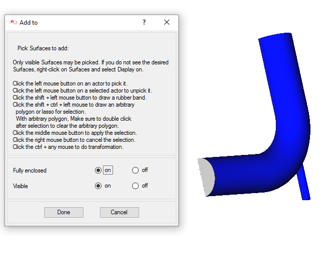 In the next steps you will define a surface group for the pipe walls, assign the appropriate attributes, and add the elbow pipe walls from the geometry to the surface group.