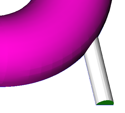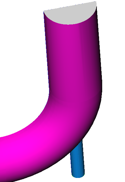 In the next steps you will define mesh controls for a region around the small pipe and extending into the main pipe by using a zone mesh control. The region of interest for this refinement is a cylinder that encloses the small pipe and extends into the main pipe.