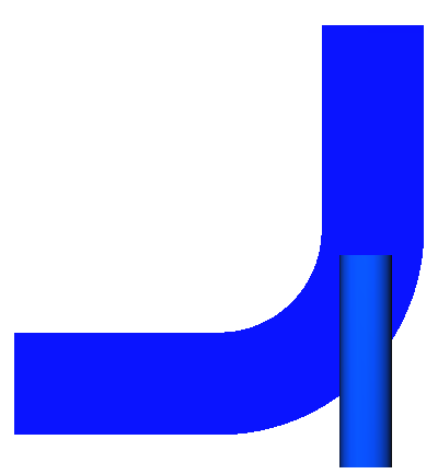 The problem to be addressed in this tutorial is shown schematically in Figure 1. This is a typical industrial example for mixing in a pipe by injecting high-velocity fluid from a small inlet into relatively low-velocity fluid in the main pipe. It consists of a 90° mixing elbow with water entering through two inlets with different velocities. The geometry is symmetric about the XY midplane of the pipe, as shown in the figure. This symmetry allows the flow to be modeled with the use of a symmetry plane. The use of a symmetry plane leads to reduced computation time while still providing an accurate solution.