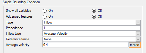 - Double-click Simple Boundary Condition under Outlet to open the Simple Boundary Condition detail panel.