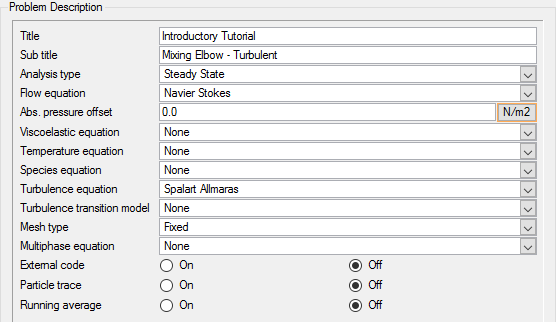 The physical models that you define for this tutorial correspond to steady state, turbulent flow. You will also provide some general information about the AcuSolve case, such as a title and subtitle.