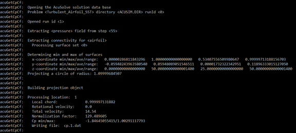 AcuGetCpCf is another utility script used to calculate the pressure coefficient (Cp) for the airfoil.