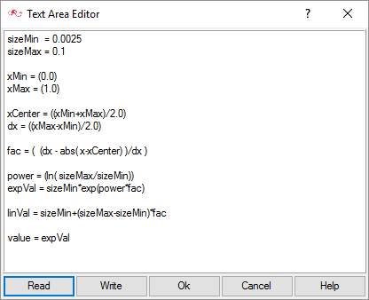 Using this syntax, the formula for volumeFlowRate is stored in the database and will automatically update whenever the inletArea or averageVelocity are updated. Any variables that are defined in the Variable Manager can be referenced when specifying an integer or floating point value in the panels area. The same expression syntax can be used.