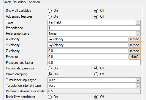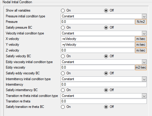 The Gamma-ReTheta transition model is a two equation model and introduces a new variable, transition ReTheta, or . Like other variables, an initial value for this variable also needs to be provided. As before, you will set it to zero to trigger the automatic initialization of by AcuSolve.