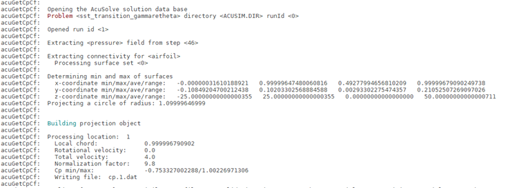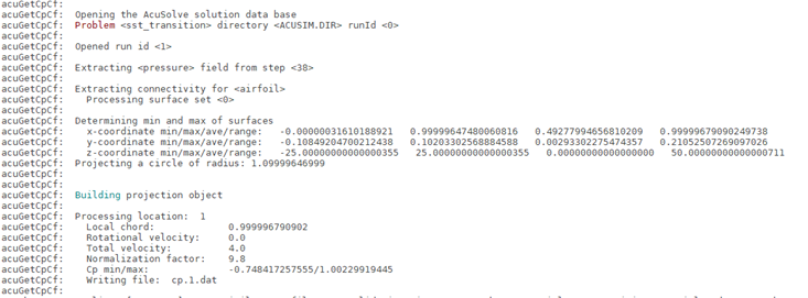 AcuGetCpCf is another utility script used to calculate the pressure coefficient (Cp) for the airfoil.