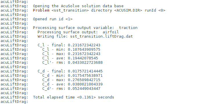 AcuSolve is shipped with a number of utility scripts to facilitate the pre and post-processing of a problem solved using the solver. You will be introduced to two of these scripts, AcuLiftDrag and AcuGetCpCf in this section, and their usage. These two scripts are focused on aerodynamic simulations as the ones solved in this tutorial.