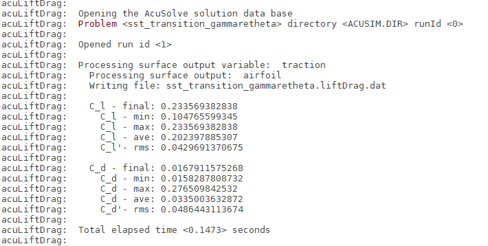 AcuLiftDrag is a utility script used to calculate the lift and drag coefficients for an airfoil.