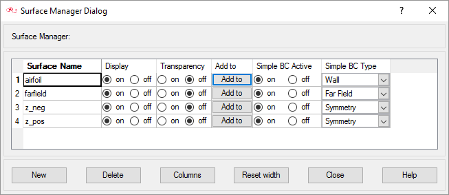 In the next steps you will define surface groups, assign the appropriate attributes for each group in the problem and add surfaces to the groups.
