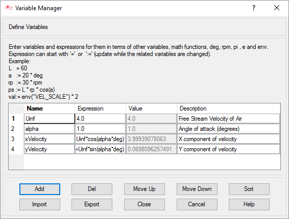 In this step, you will use the Variable Manager in AcuConsole to create a list of expressions that will be used during the model setup process.