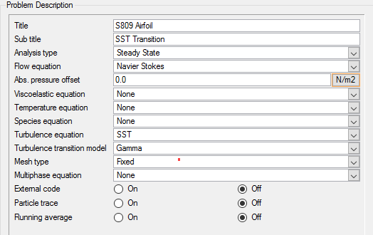 At this stage you have successfully setup and ran the S809 airfoil problem with the Gamma transition model and SST turbulence model. In this part of the tutorial you will modify your open database to setup the problem so as to use the Gamma-ReTheta transition model.