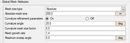 Global mesh attributes are the meshing parameters applied to the model as a whole without reference to a specific geometric volume, surface, edge, or point. Local mesh attributes are used to create mesh generation controls for specific geometry components of the model.