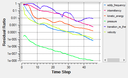 - The residual and solution ratios of the transition simulations are sometimes stagnated (commonly seen when the bubble forms near the leading-edge of an airfoil)