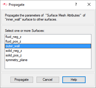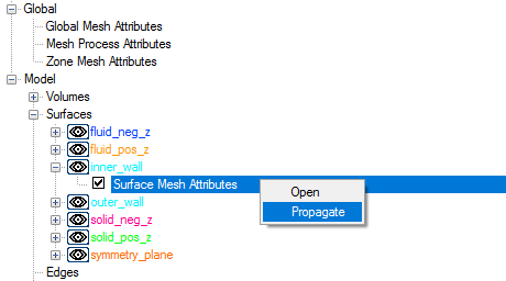 Instead of repeating the above steps for the outer_wall surface, you can choose to propagate the mesh attribute settings for inner_wall surface group to outer_wall surface group.