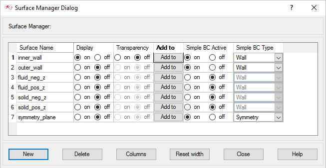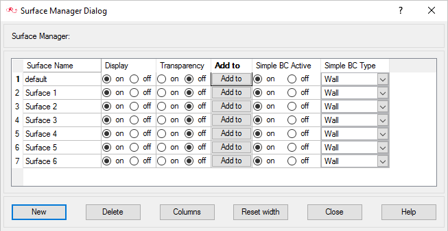 In the next steps you will define surface groups, assign the appropriate settings for the different characteristics of the problem, and add surfaces to the group containers.