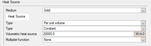 The second body force which will be used in this model is the volumetric heat source, which specifies the heat energy source term per unit volume. This will be used to simulate the heat-generating inner cylinder in our model.