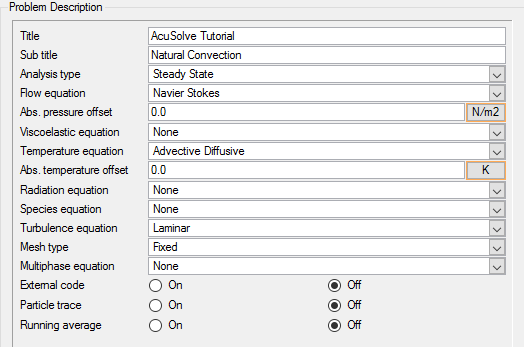 In the next steps you will set the parameters that control the behavior of AcuSolve as it progresses during the solution.