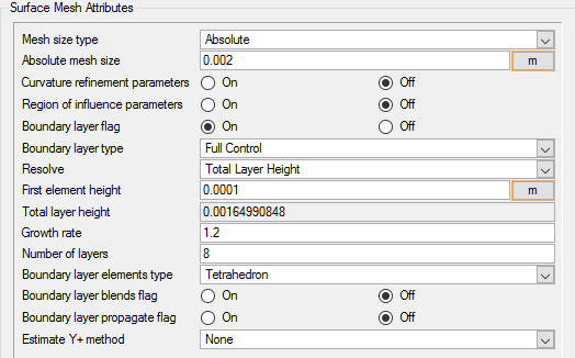 Surface mesh attributes are applied to a specific surface in the model. It is a type of local meshing parameter used to create targeted mesh controls for one or more specific surfaces.