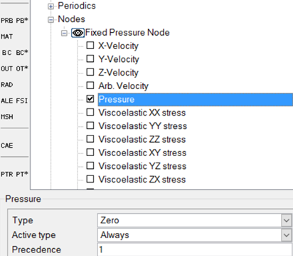 The present case does not have any inlet or outlet surfaces to define any boundary condition that sets the pressure level inside the domain. To make the solution more robust, you will set a pressure reference point using a nodal boundary condition. The following steps will show how to setup the reference pressure inside the CFD domain.