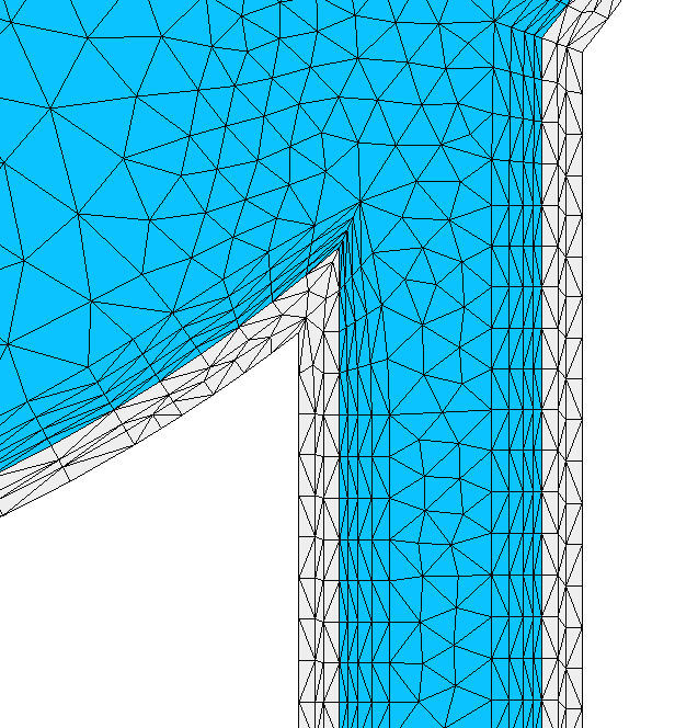 In addition to setting appropriate conditions to capture the physics of the simulation, it is important to generate a mesh that is sufficiently refined to provide good results. In this tutorial the global mesh size is set to provide at least 30 mesh elements around the circumference of the large inlet. For this problem, the global mesh size is 0.0106 m. This mesh size was chosen to provide a quick turnaround time for the model. For real-world simulations, you would modify your mesh settings after an initial solution until a mesh-independent solution is reached (that is, a solution that does not change with further mesh refinement).