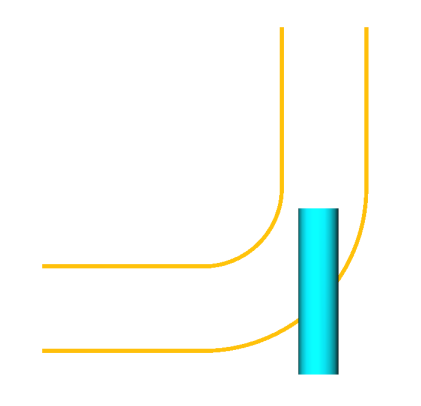 In the next steps you will define mesh controls for a region around the small pipe and extending into the main pipe by using a zone mesh control. The region of interest for this refinement is a cylinder that encloses the small pipe and extends into the main pipe.