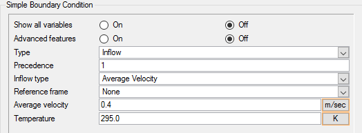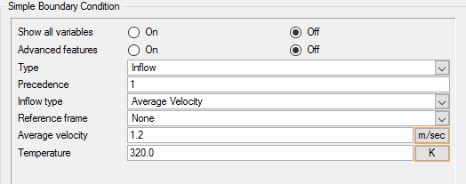 In the next steps you will define a surface group for the large inlet, set the inlet velocity, and add the main inlet from the geometry to the surface group.