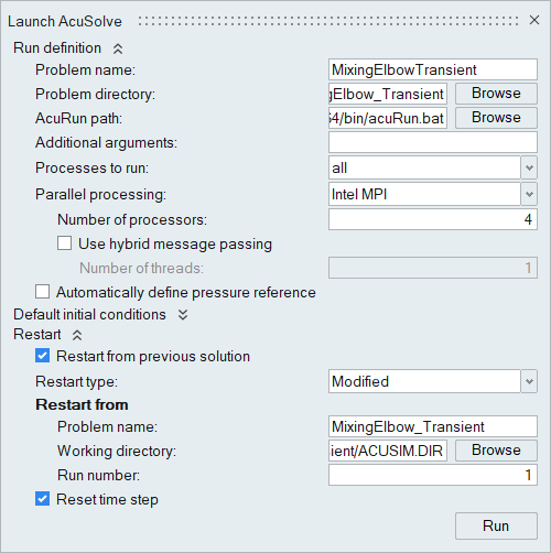 Prior to running through this tutorial, copy HyperWorksCFD_tutorial_inputs.zip from <Altair_installation_directory>\hwcfdsolvers\acusolve\win64\model_files\tutorials\AcuSolve to a local directory. Extract ACU-T3101_MixingElbowTransient.hm from HyperWorksCFD_tutorial_inputs.zip.