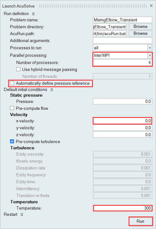This tutorial provides you instructions for running a transient simulation of a 3D turbulent flow with conjugate heat transfer in a mixing elbow using HyperWorks CFD and AcuSolve. You should have already run through the ACU-T: 3100 Conjugate Heat Transfer in a Mixing Elbow tutorial and have a basic understanding of HyperWorks CFD, AcuSolve and HyperView. The HyperWorks introductory tutorial, ACU-T: 1000 HyperWorks UI Introduction, gives a basic introduction to HyperWorks, AcuSolve, and HyperView.